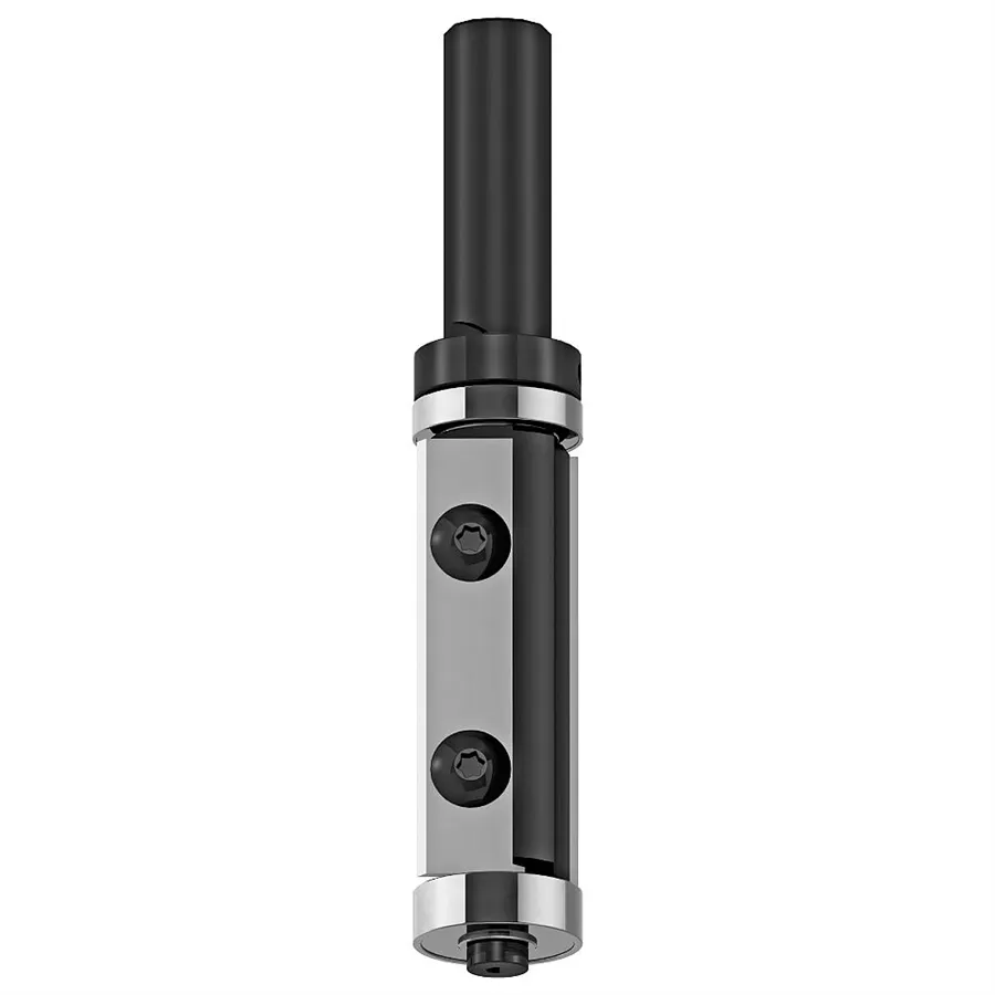 Bündigfräser mit oberem und unterem Kugellager. Doppelseitige Wendeplatten sind mit Torx-Schrauben befestigt. Zum präzisen Passungsfräsen mit einer Oberfräse oder in einem Frästisch.