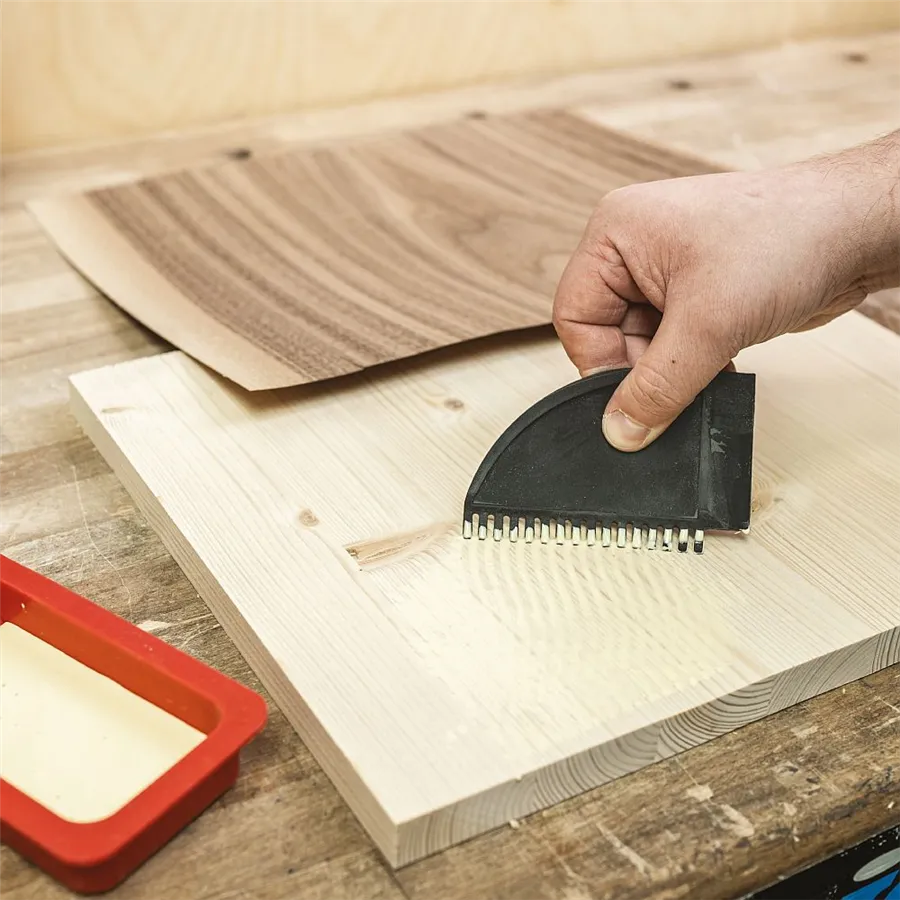 Das abgeflachte Kunststoffende des Stiels ist für eine bequeme Anwendung leicht flexibel. Dank seiner Länge von 40 mm verstreichen Sie den Kleber auch in tiefe Fugen oder Fischgrätenverbindungen.