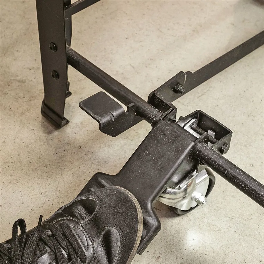 Die robuste Stahlkonstruktion sorgt für maximale Standsicherheit auch bei anspruchsvollem Einsatz. Durch den Pedalmechanismus und die verbauten Rollen fällt der Umgang mit dem Untergestell einfach an – Sie können Ihre Maschine einfach dorthin bewegen, wo Sie sie gerade benötigen.